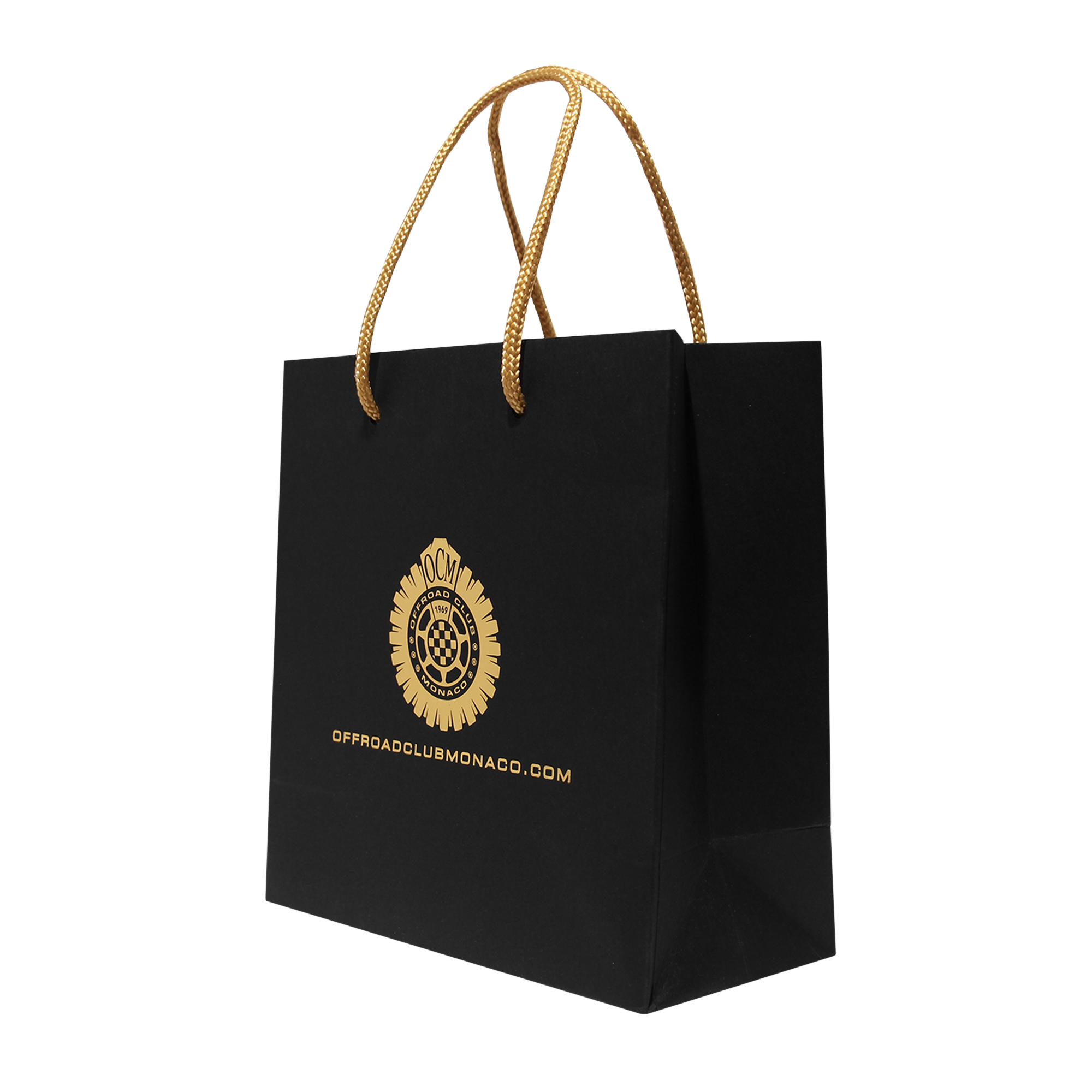 Busta regalo in splendida carta nera con logo dell’Offraod Club Monaco oro stampato a caldo.