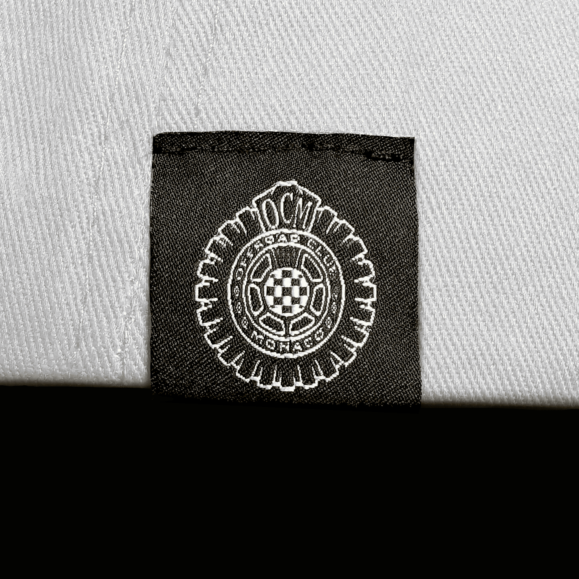 Etichetta jacquard loggata, laterale applicata a cavallotto.