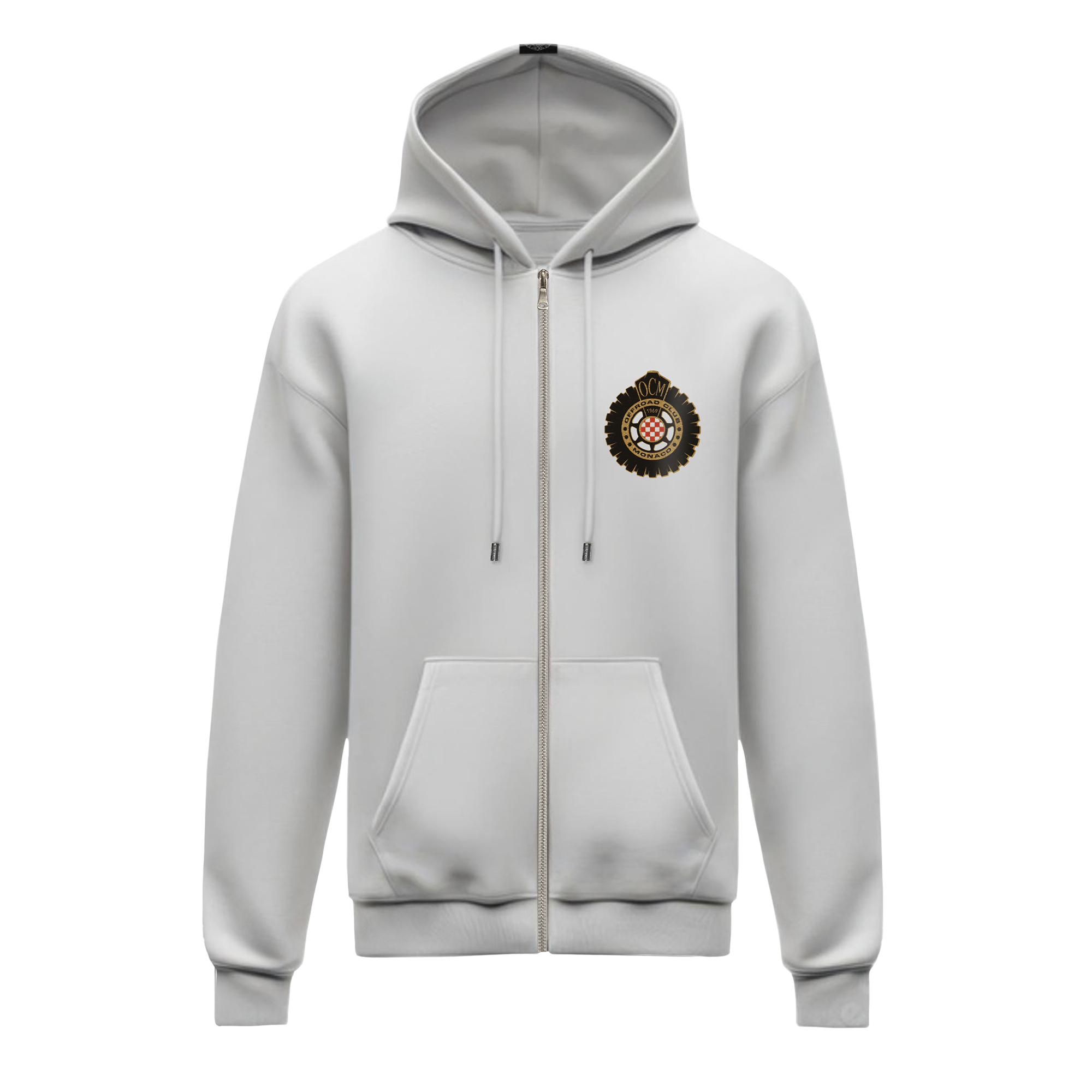 Il suo cappuccio foderato e’ arricchito da etichetta jacquard personalizzata e cucita a cavallotto.