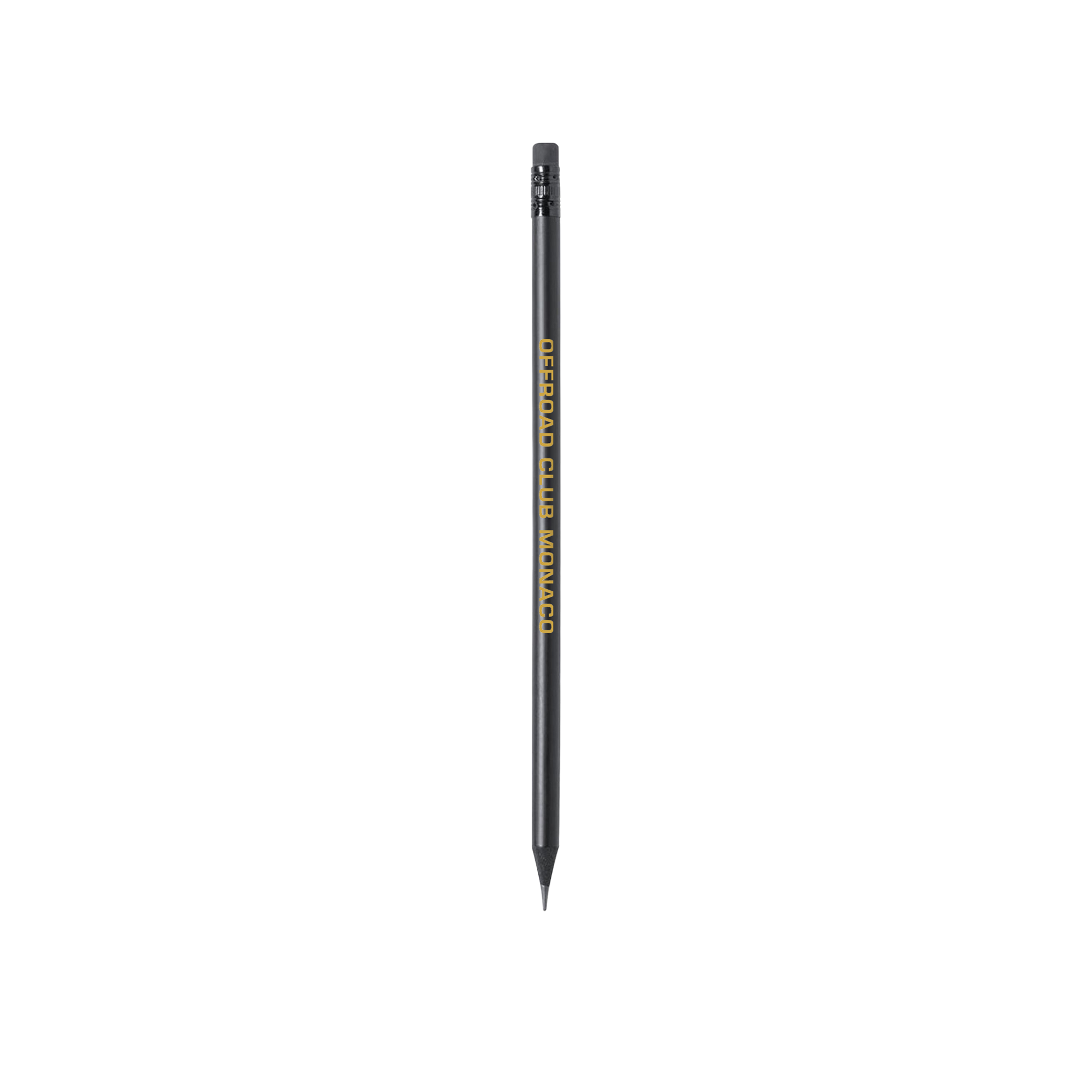 Matita in legno naturale con finitura nera opaca. Con gomma, mina nera e punta affilata.