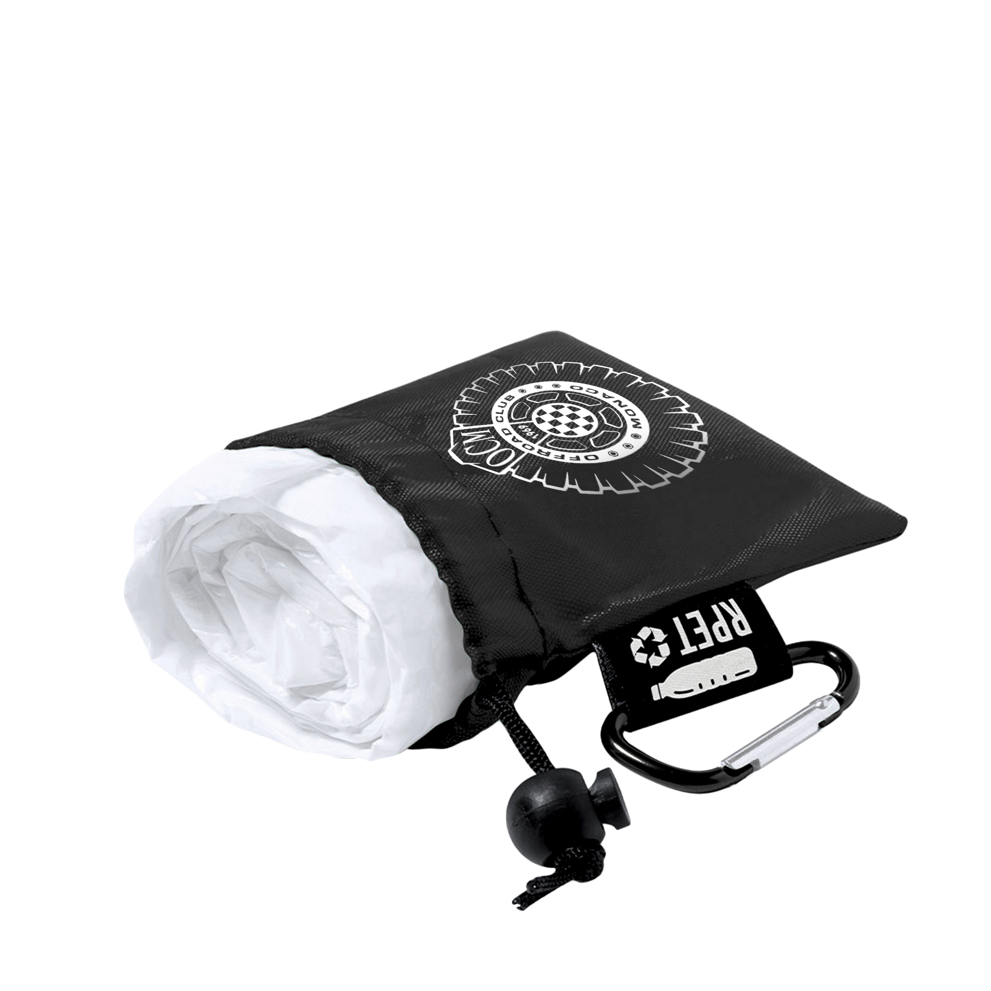 Leggero e compatto, il poncho Offroad Club Monaco è dotato di moschettone e custodia personalizzata per un trasporto semplice e veloce.