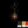 Grintoso portachiavi bifacciale con catena, moschettone e anello in metallo galvanizzato che supporta il nostro classico e iconico logo Offroad Club Monaco, nei nostri colori rappresentativi: oro, nero, rosso e bianco.