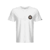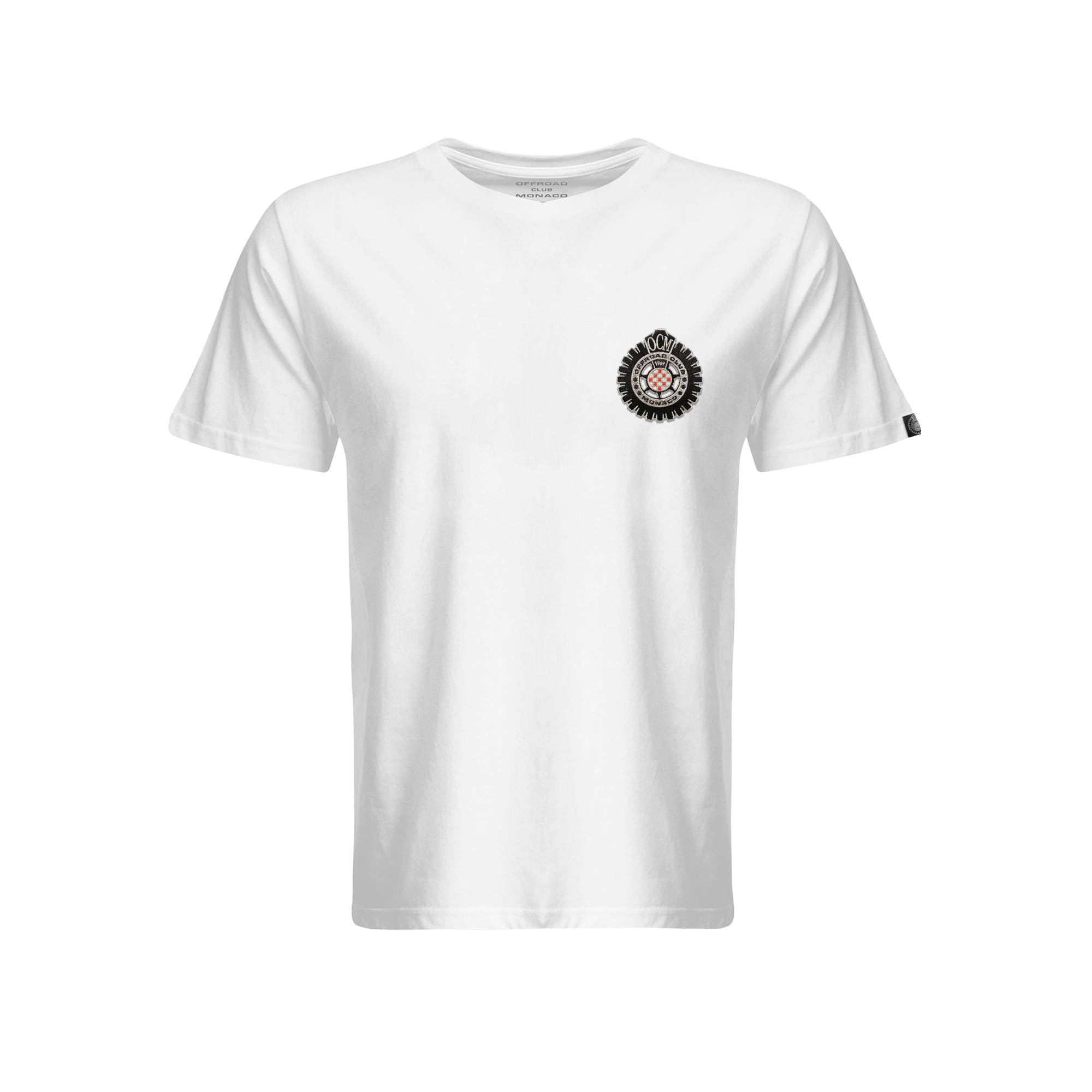 Maglietta in cotone pettinato bianca, impreziosita da etichetta jacquard cucita a cavallotto nella manica sinistra, con l’applicazione della rivisitazione del nostro iconico logo ricamato i in prezioso filo argentato, come stemma sul lato cuore e sul retro da un altro prezioso logo di dimensione maggiore, apposti entrambi a mano tramite pressa.